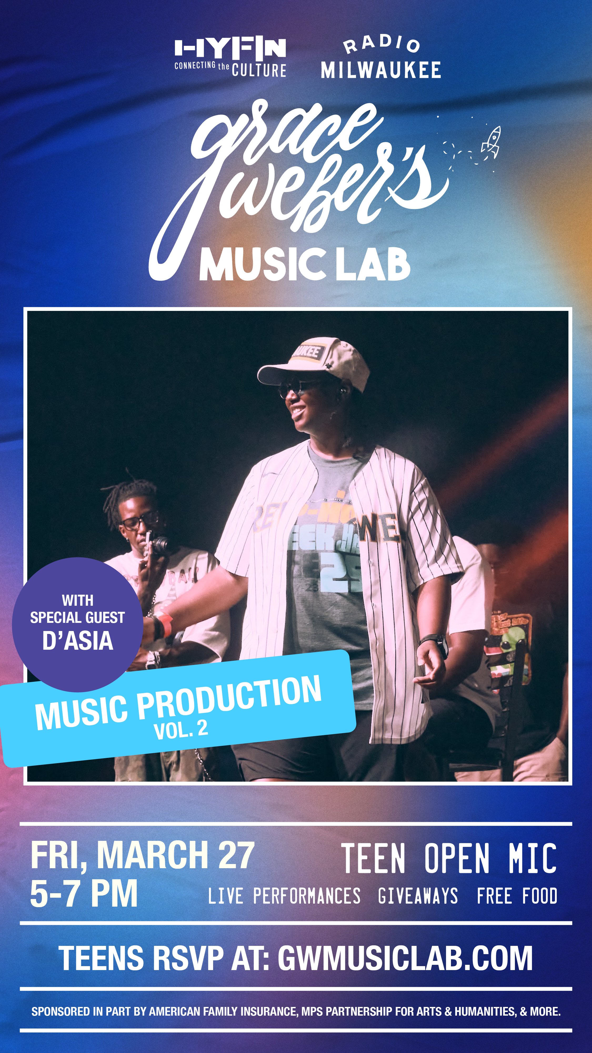 *Teen Open Mic slots are limited! Registration open until day before Lab or when slots are full. Clean show tracks & instrumentals for Open Mic can be sent as YouTube/SoundCloud links or mp3s to gwmusiclab@radiomilwaukee.org
